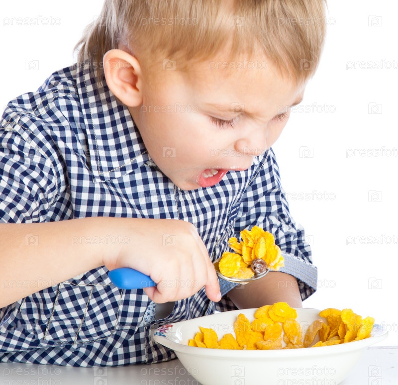 Мальчик ест мюсли