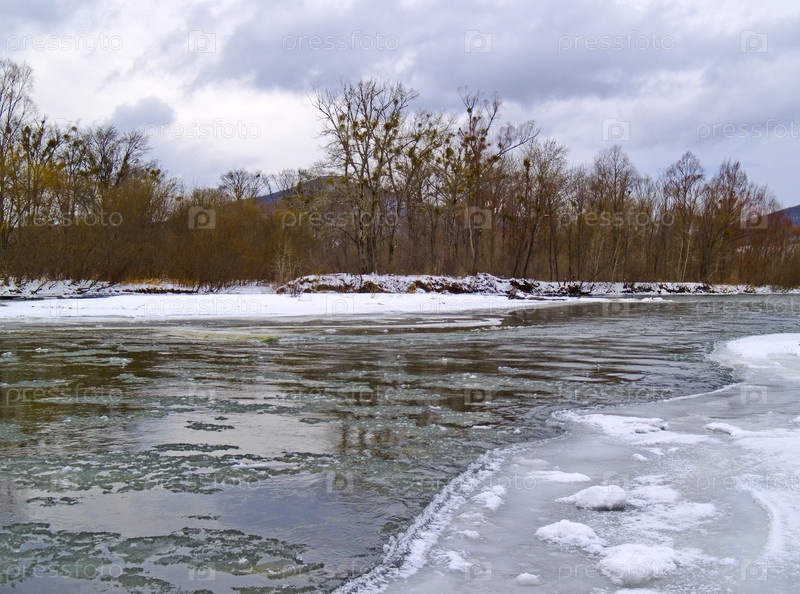 Лед на реке в начале зимы