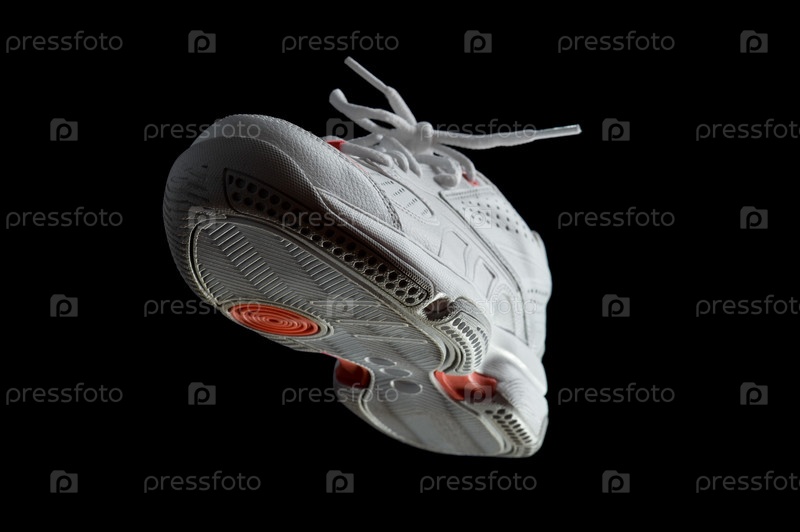 Одна белая кроссовка на черном фоне