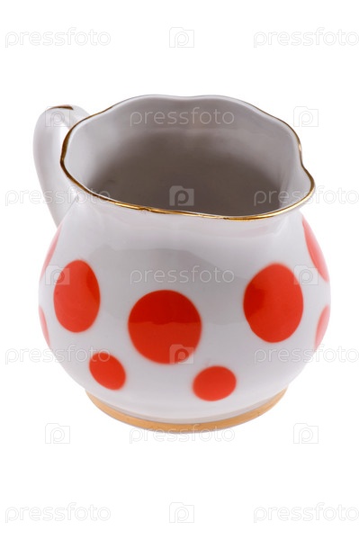 Белый молочный кувшин с красным рисунком на белом фоне