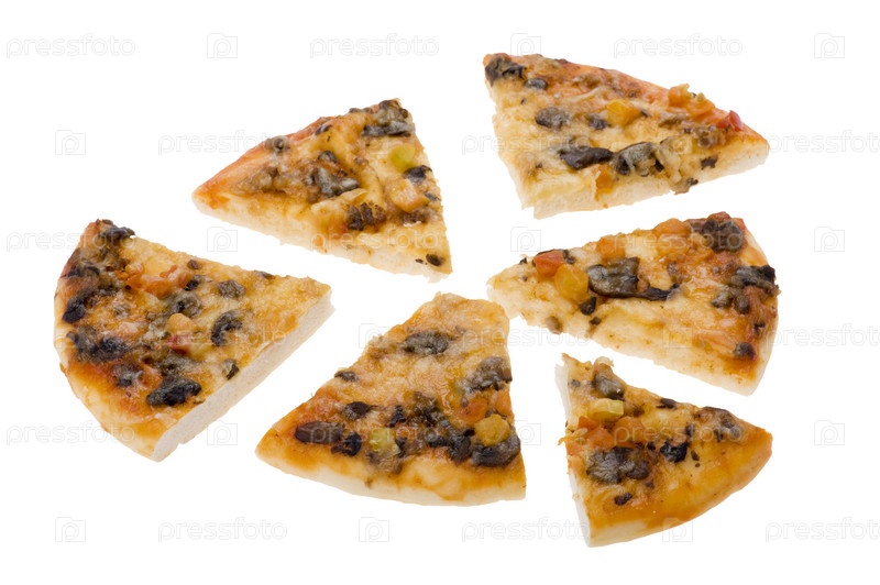 Кусочки пиццы на белом фоне