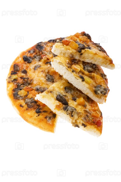 Кусочки пиццы с грибами на белом фоне
