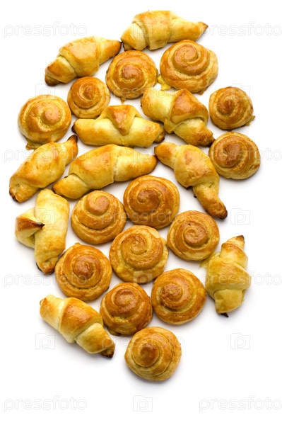 Булочки и круассаны на белом фоне