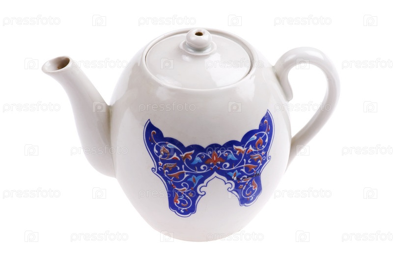 Заварочный чайник крупным планом на белом фоне
