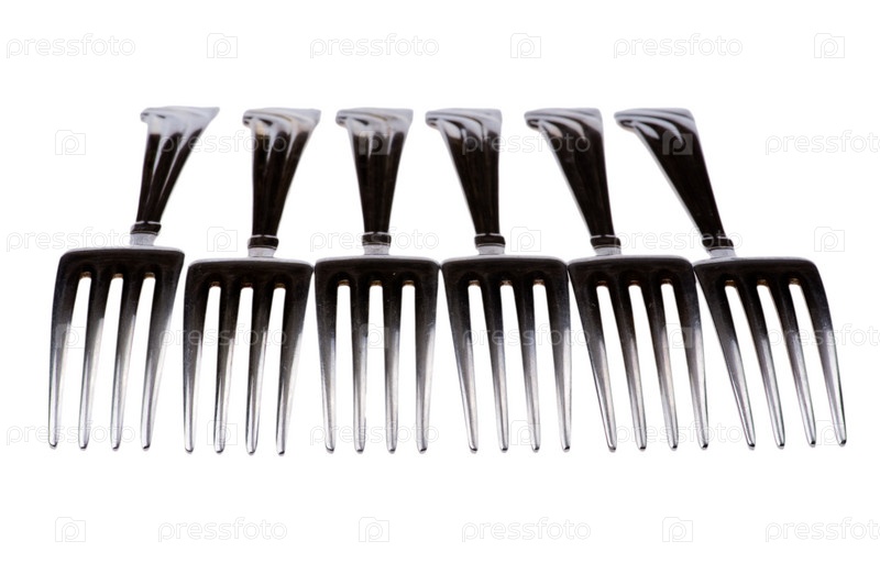Шесть вилок на белом фоне