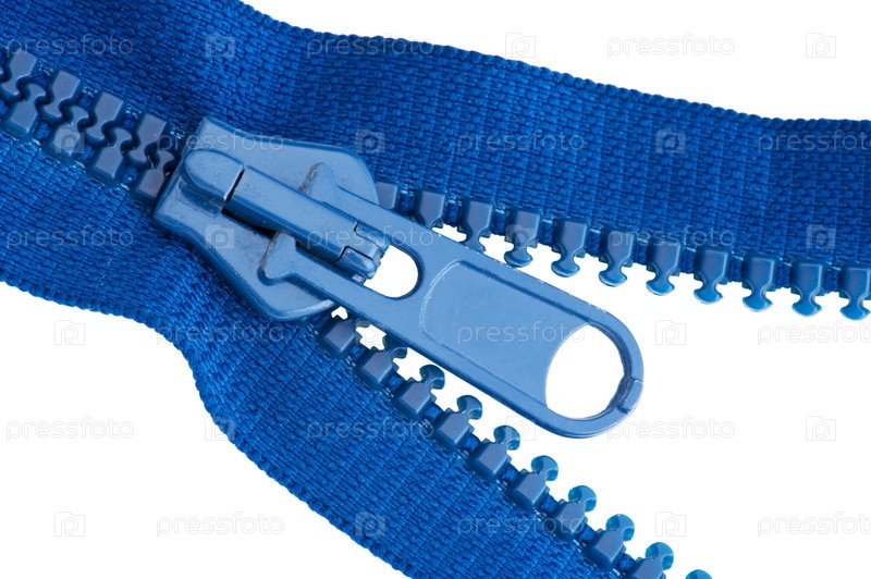 Синяя застежка-молния на белом фоне