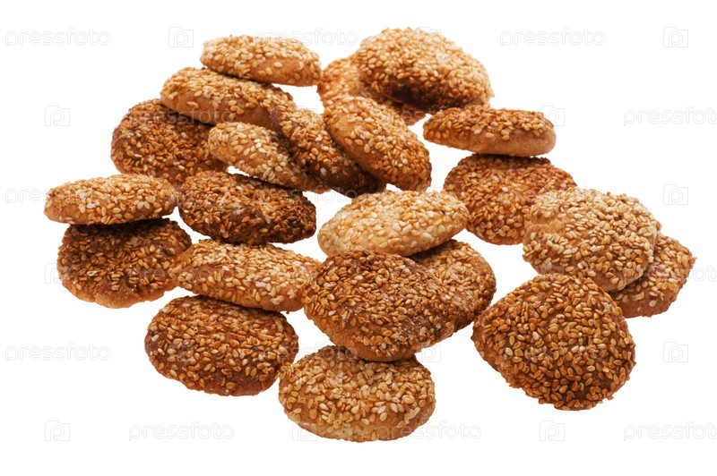 Печенье с кунжутом на белом фоне