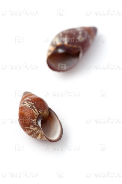 Две маленькие коричневые ракушки на белом фоне