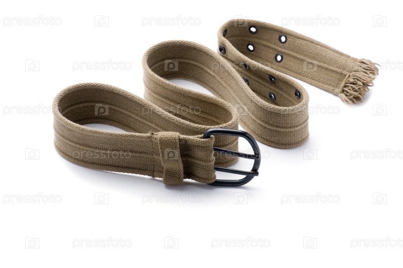 Тряпичный бежевый ремень крупным планом на белом фоне