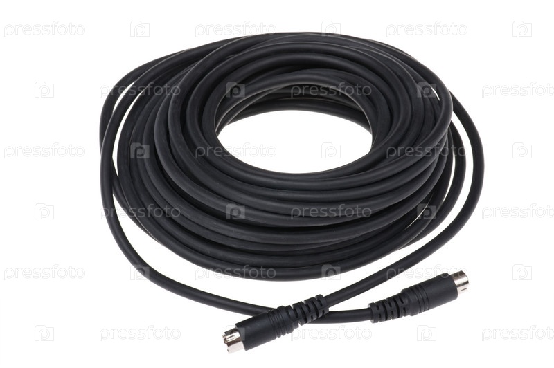 Черный провод в сложенном виде крупным планом на белом фоне