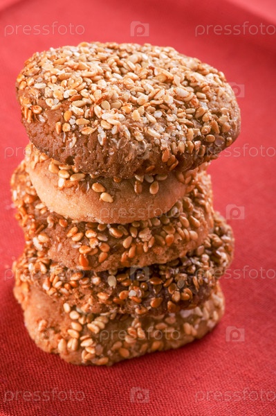 Печенье с кунжутом на красном фоне