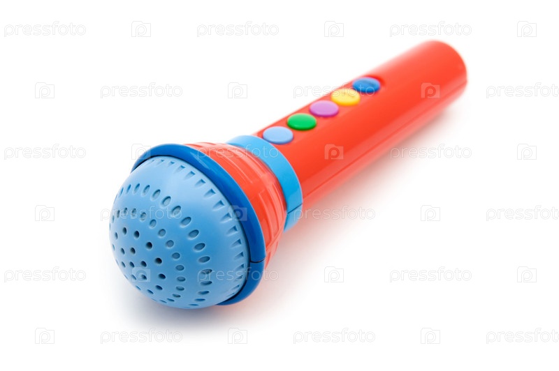 Детский цветной микрофон крупным планом на белом фоне