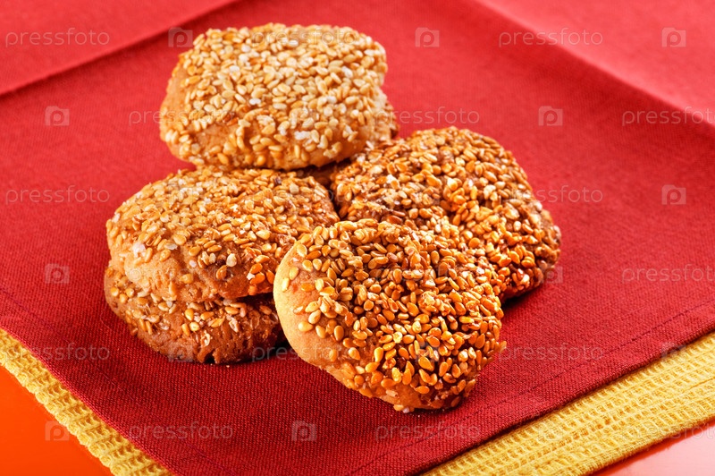 Печенье с кунжутом на красной салфетке