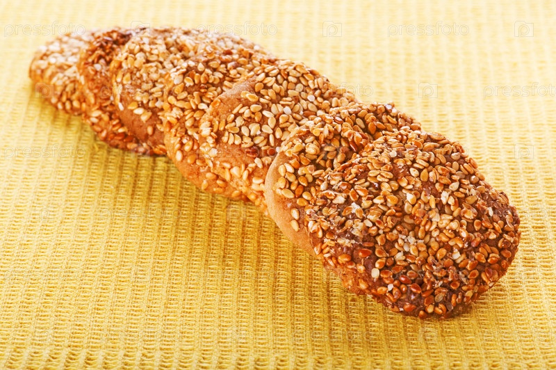Печенье с кунжутом на желтом фоне