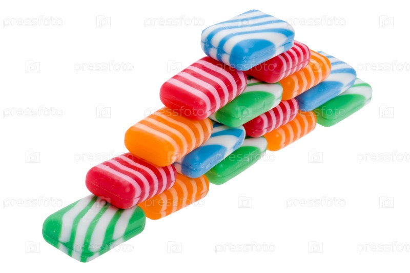 Несколько разноцветных кусков мыла крупным планом на белом фоне