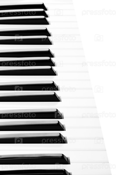 Клавиатура фортепиано крупным планом на белом фоне
