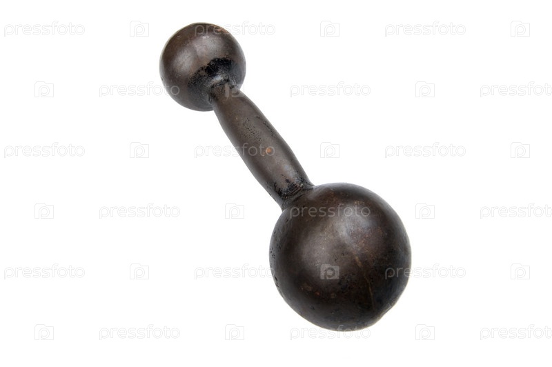 Тяжелая гантель на белом фоне