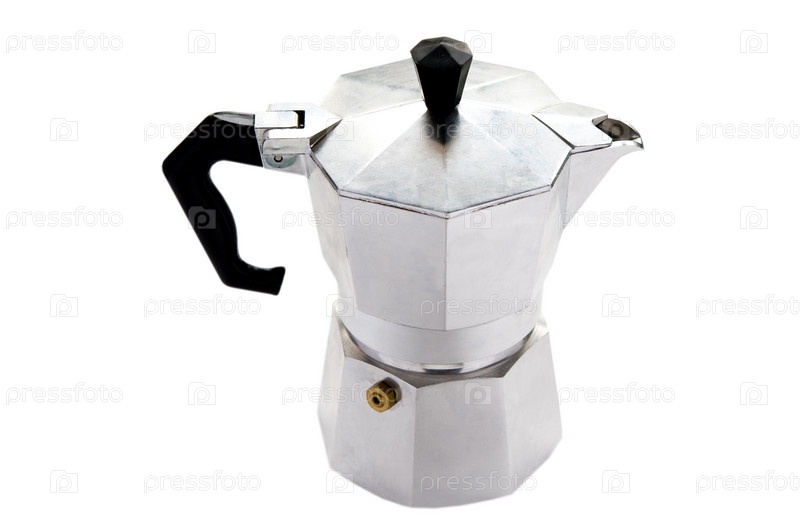 Кофеварка крупным планом на белом фоне