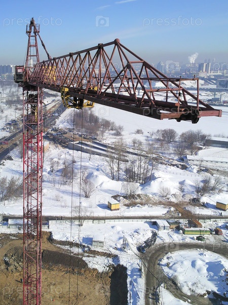Высокий башенный кран на строительной площадке