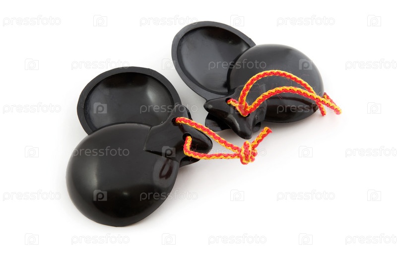 Испанские кастаньеты крупным планом на белом фоне
