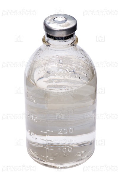 Медицинская бутылка крупным планом, на белом фоне