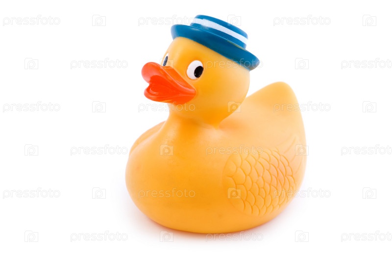 Игрушечная утка на белом фоне