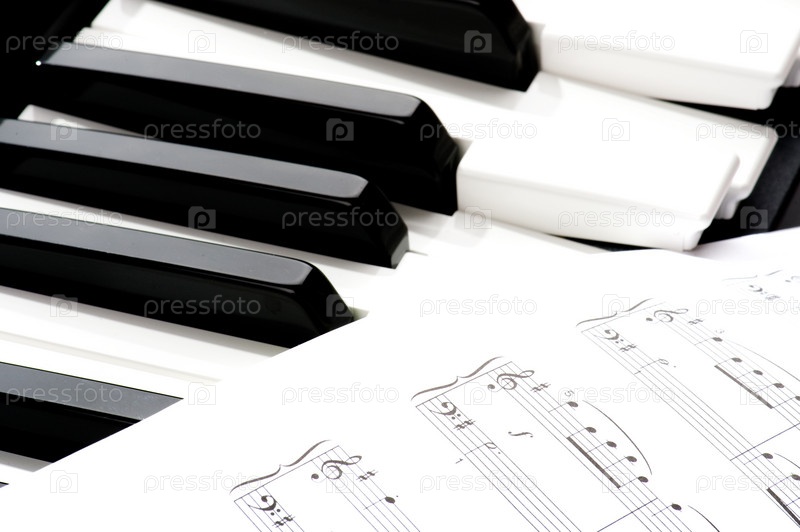 Клавиатура фортепиано и ноты, крупный план