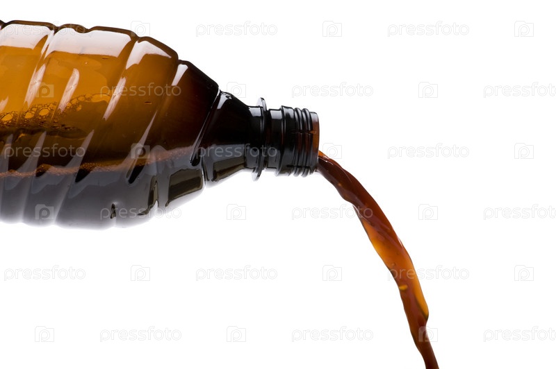 Пиво льется из бутылки на белом фоне