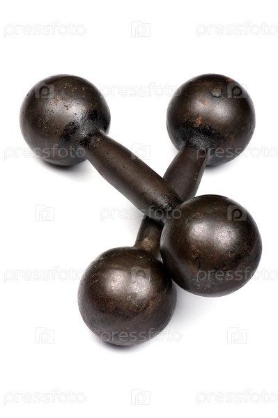 Гантели крупным планом, на белом фоне
