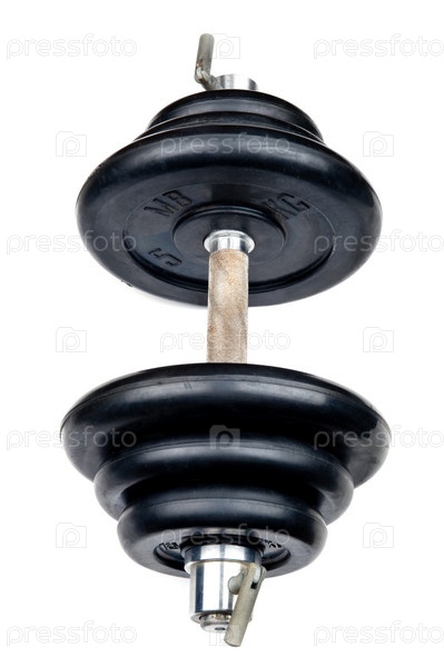 Гантель крупным планом, на белом фоне