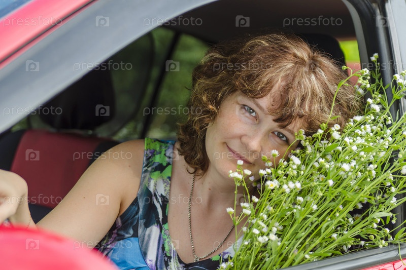 Женщина с букетом полевых цветов