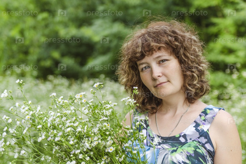Женщина с букетом полевых цветов