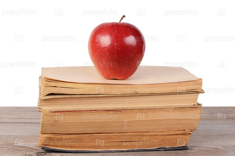 Книги и яблоко