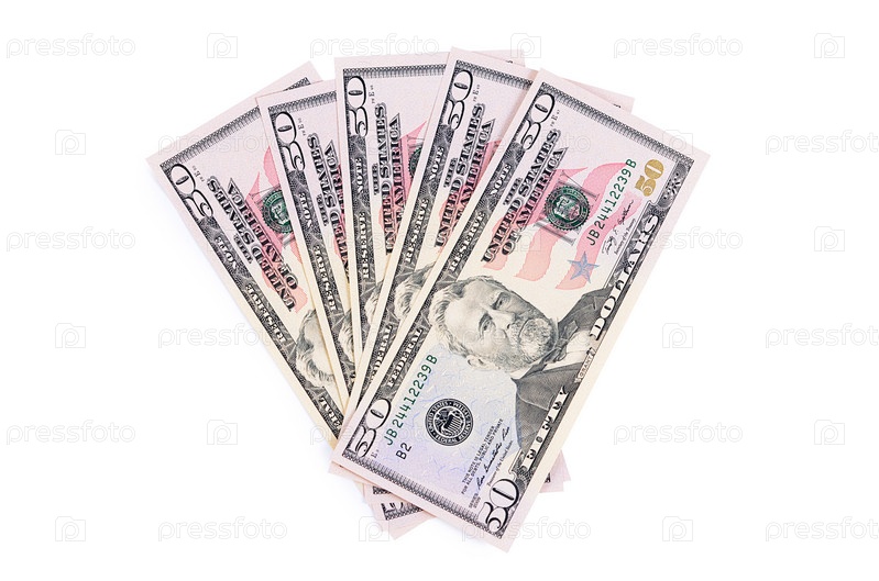 Пятьдесят долларов, изолированные на белом фоне