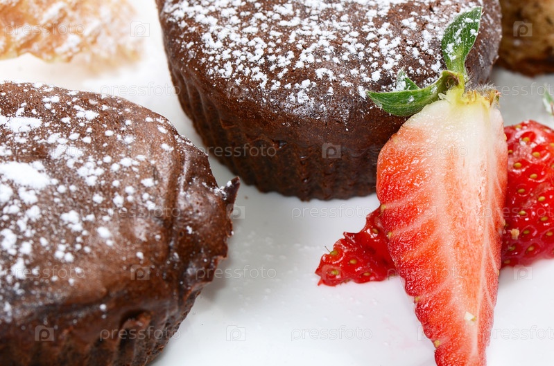 Шоколадный кексс клубникой