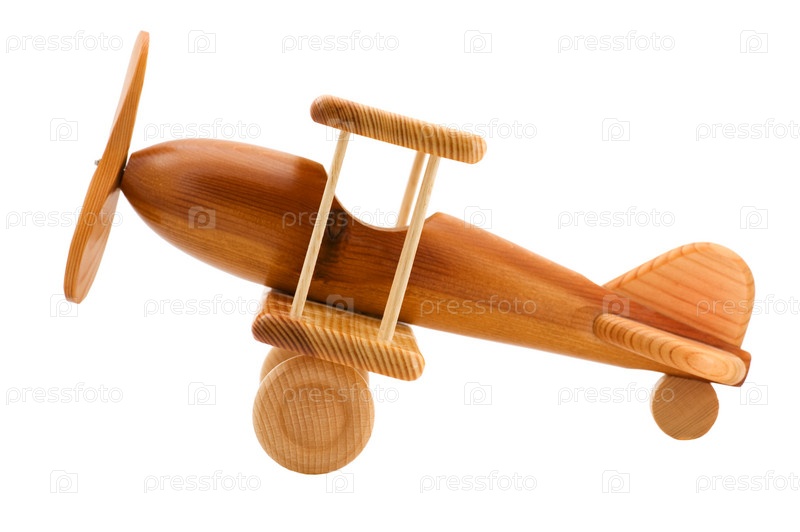 Деревянная игрушка-самолет, на белом фоне
