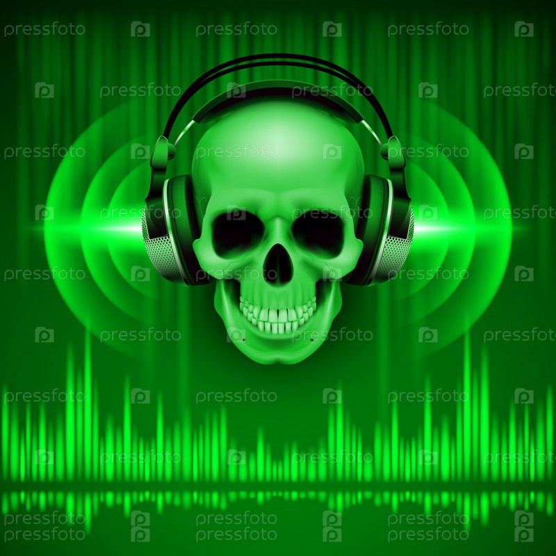 Череп в наушниках и эквалайзер