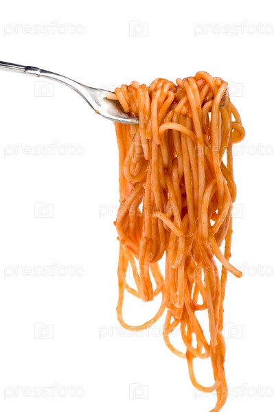 Спагетти с кетчупом на вилке