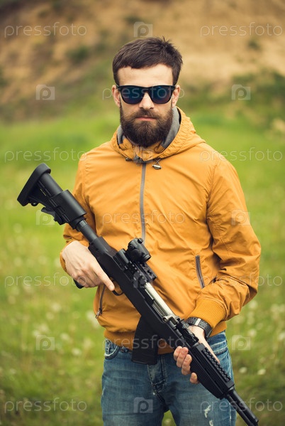 Мужчина с автоматической винтовкой