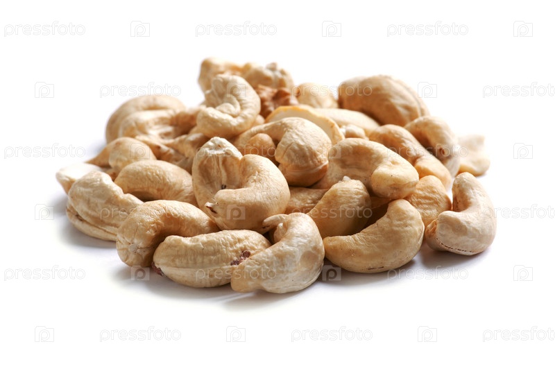 Орехи кешью крупным планом, на белом фоне