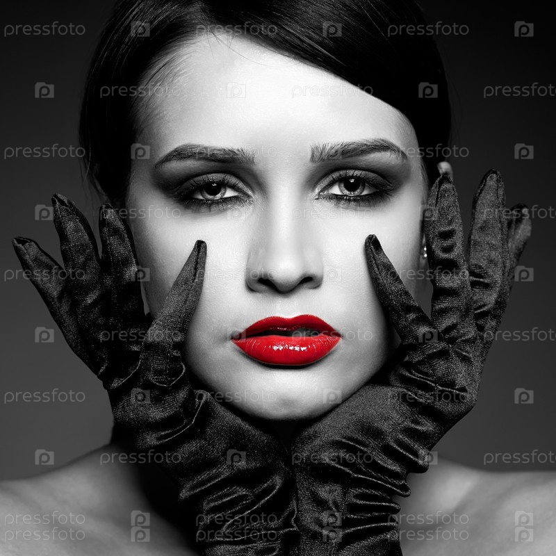 Женщина в черных перчатках