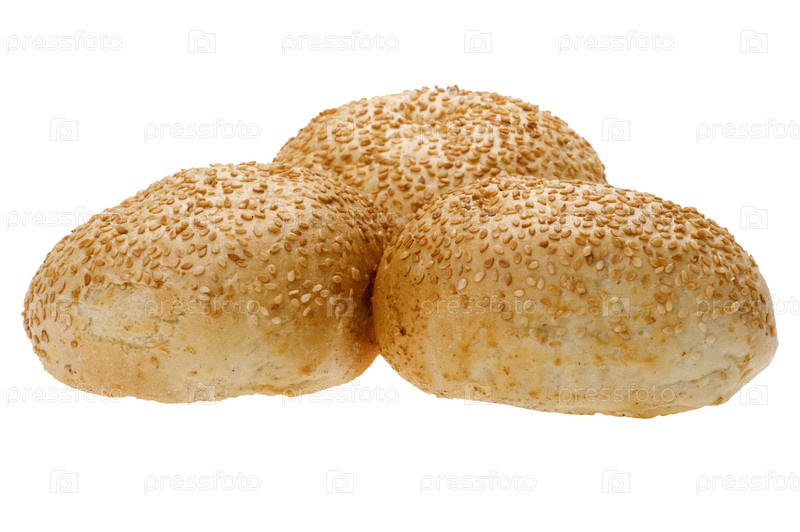 Булочки с кунжутом, на белом фоне