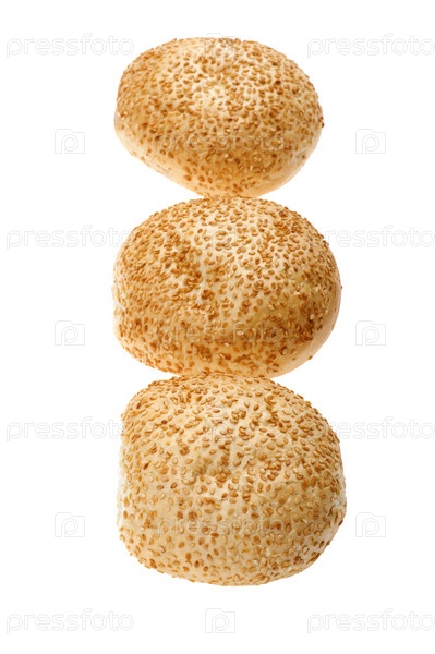 Булочки с кунжутом, на белом фоне