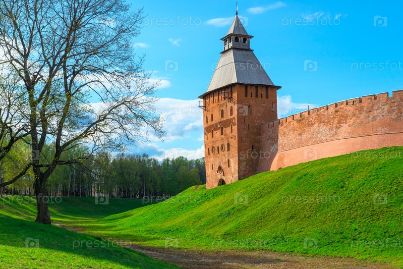 Башня Новгородского Кремля над городом