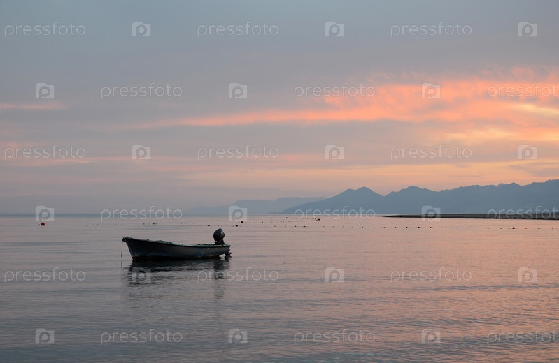 Вечер. Одинокая лодка в море
