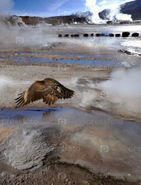 Кондор в долине Гейзеров, пустыня Атакама, Чили