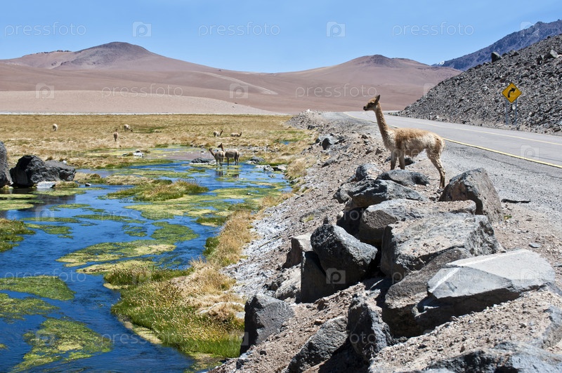 Пасущиеся альпаки в Атакама
