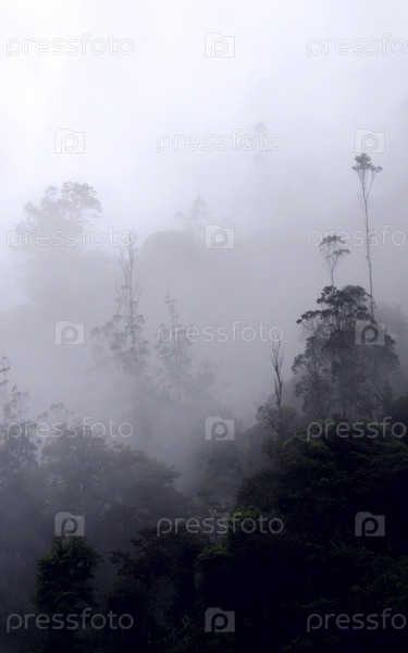 Облака окутывают холмы возле Баньос-де-Агуа-Санта, Анды. Эквадор