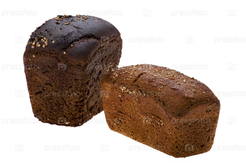 Буханка ржаного хлеба, белый фон