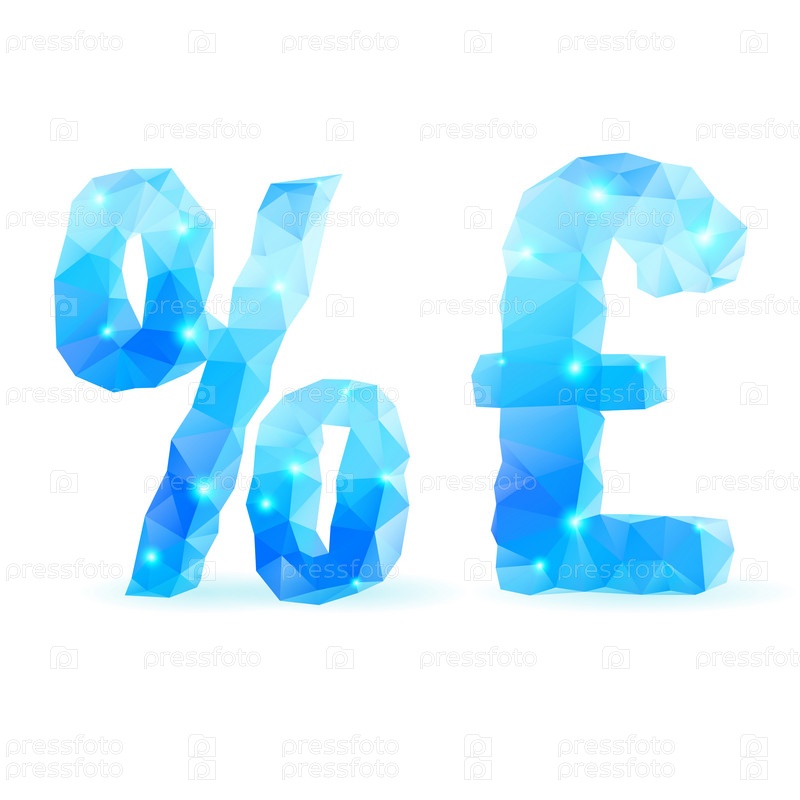 Блестящий синий полигональный шрифт. Знак% и фунт стерлингов